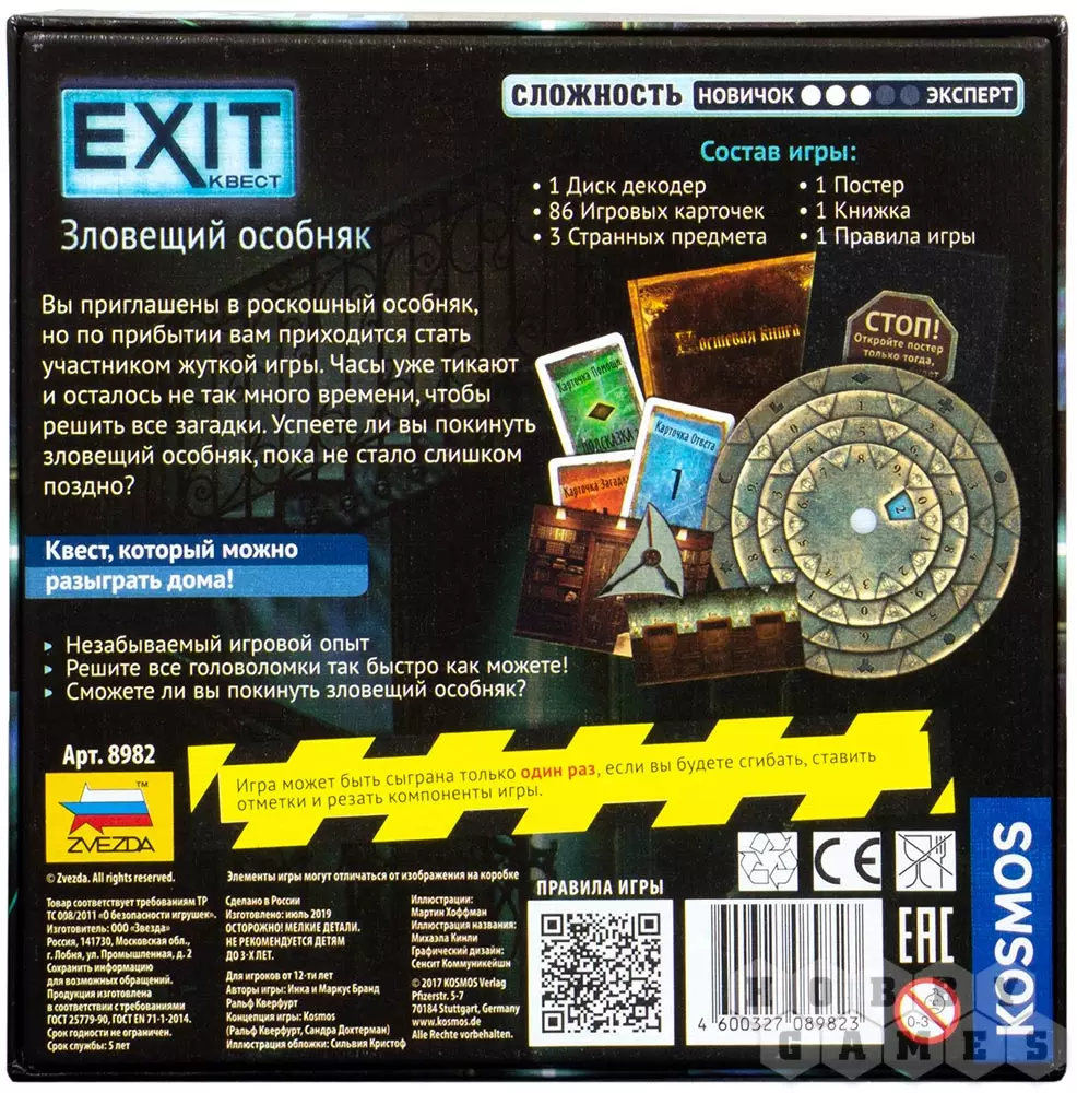 Ольга17.02.2022 20:05Неплохой квест, скоротали с парнем воскресный вечер. Задания довольно сложные, что мне понравилось. Из недостатков (исключительно мое мнение): целой игра у вас после квеста не останется, так как в процессе решения некоторых головоломок нужно резать некоторые карты, книжки и прочее. Планирую и в дальнейшем заказывать квесты этой серии. Оценка 4 из 5.
