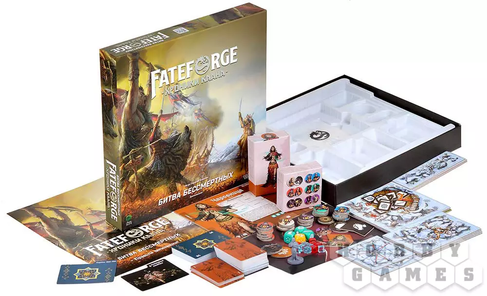 "Битва бессмертных" – это дополнение к игре "Fateforge: Хроники Каана", где вас ожидают новые механики, которые увеличат уровень сложности вашей кампании, но при этом доставят массу удовольствия. Теперь вы сможете сражаться верхом, управлять подручными и совершать совместные манёвры со своими союзниками. Также к вашему отряду присоединится новая спутница – загадочная Чаровница с уникальными способностями. Благодаря этому дополнению вы прочувствуете всю важность командной работы и слаженных, продуманных действий. Ведь именно они – гарант того, что вы сможете завершить это приключение и не погибнуть...