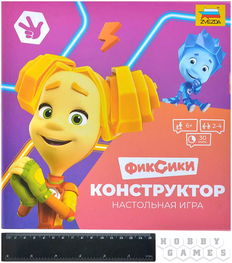 В детской игре "Фиксики: Конструктор" юные настольщики будут управлять фиксиками, которые бегают по дому в поисках деталей для починки сломанных вещей. Чтобы утюг снова заработал, нужны 3 батарейки и шестерёнка, а для фотоаппарата потребуются батарейка, шестерёнка и шуруп. Чтобы фиксик побежал за деталькой, бросьте кубик и передвиньте его на выпавшее количество клеток. Остановились на шурупе? Возьмите его жетончик! Собрали полный комплект нужных запчастей? Скорее бегите чинить прибор! За каждую починку фиксик получит заметный скачок по полю и сможет обогнать своих товарищей.