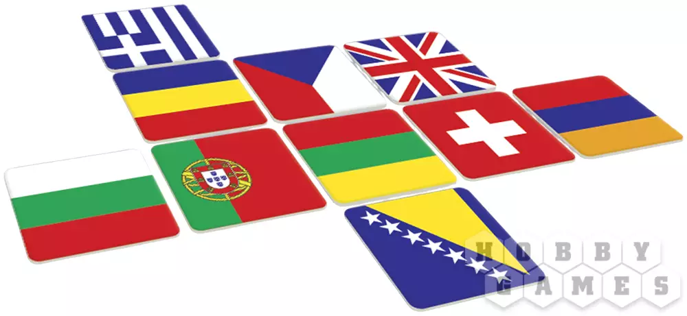 Ваша задача – выкладывать флаги в пределах поля 5x5. Существует два главных принципа, которым вы должны следовать неукоснительно: карты должны стыковаться друг с другом, а соприкасающиеся стороны – иметь хотя бы один общий цвет. Обратите внимание: если на одной карте цвет представлен целиком, то её "сосед" должен содержать его лишь частично – то есть, в большинстве случаев быть частью какого-то узора. Перед тем, как выложить флаг на поле, вы вправе перевернуть его как вам угодно. А ещё не забывайте называть страну, символику которой вы используйте – быстрее запомните полезную информацию! А если не знаете или забыли, всегда можно заглянуть в справочник игры или спросить у других игроков. Продолжайте разыгрывать карты до тех пор, пока не избавитесь от всех них – или пока больше никак не сможете походить.