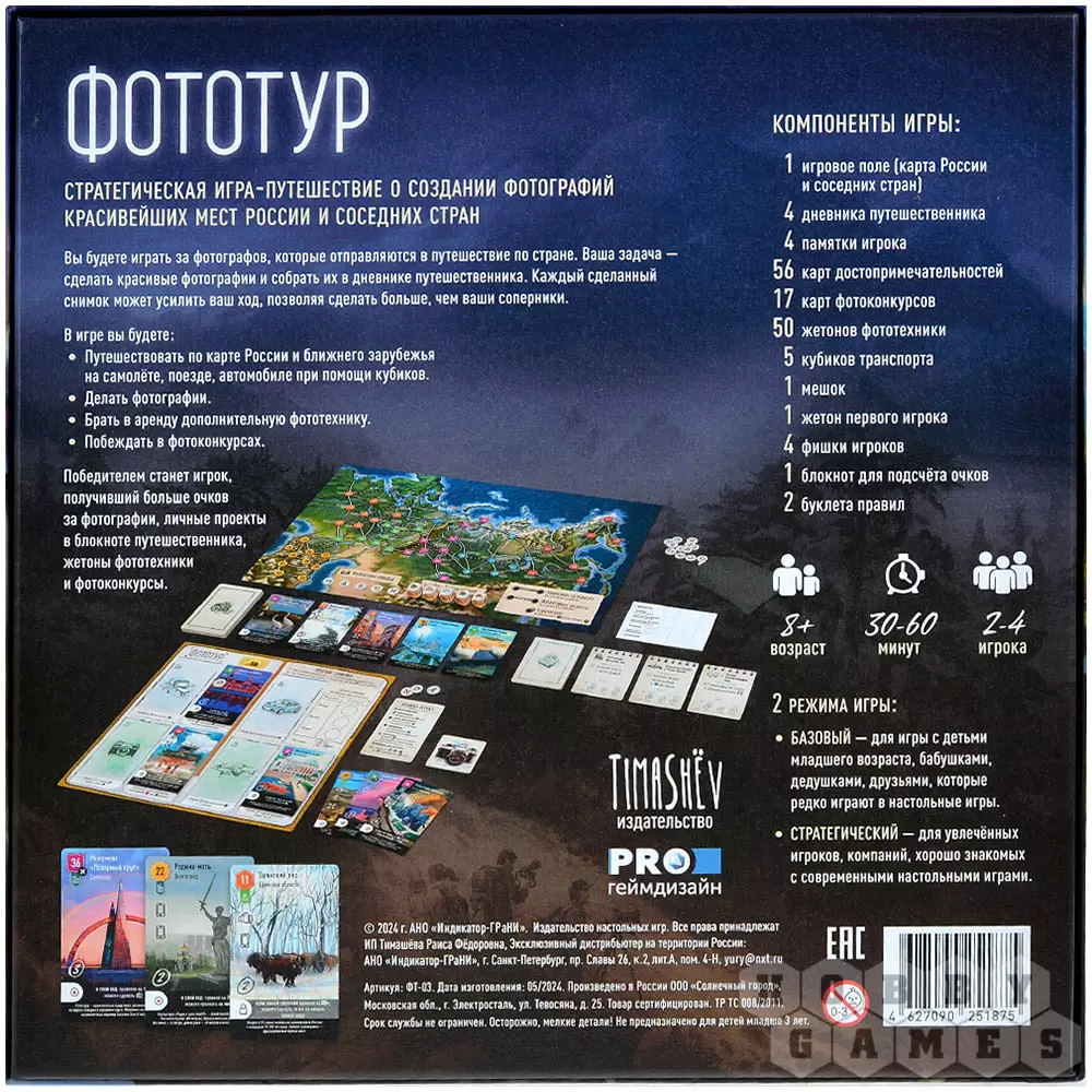 Каждый уважающий себя путешественник, отправляясь в очередное приключение, обязательно берёт с собой какую-нибудь фотографирующую технику: телефон, профессиональную камеру или даже обычную, дряхлую мыльницу (плюс к атмосфере). Но если обычно вы фотографируете скорее для души и семейного альбома (ой, то есть, красивой ленты в соцсети), то в этой игре придётся немножко попотеть и подойти к делу более взвешенно. Почему? Потому что вы будете не просто наслаждаться красивыми видами России и соседних стран – вы будете соревноваться за то, у кого получится самый красивый дневник путешественника! И хотя в "Фототуре" специально существует два режима игры – базовый, полегче, и стратегический, для игроков поопытнее, – продумывать свои действия придётся и там, и там, ведь цель – победить – всегда одинаковая!