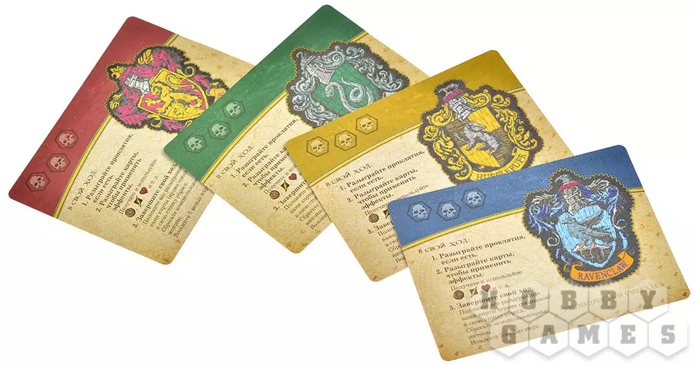Особенность игры кроется в уникальных механиках факультетов. Выбрав Гриффиндор, Когтевран, Слизерин или Пуффендуй, вы получаете доступ к особым эффектам карт. Союзники усиливают ваши возможности, а проклятия добавляют элемент неожиданности. Красочные иллюстрации, жетоны атаки и здоровья, а также детализированный планшет создают неповторимую атмосферу магического мира.