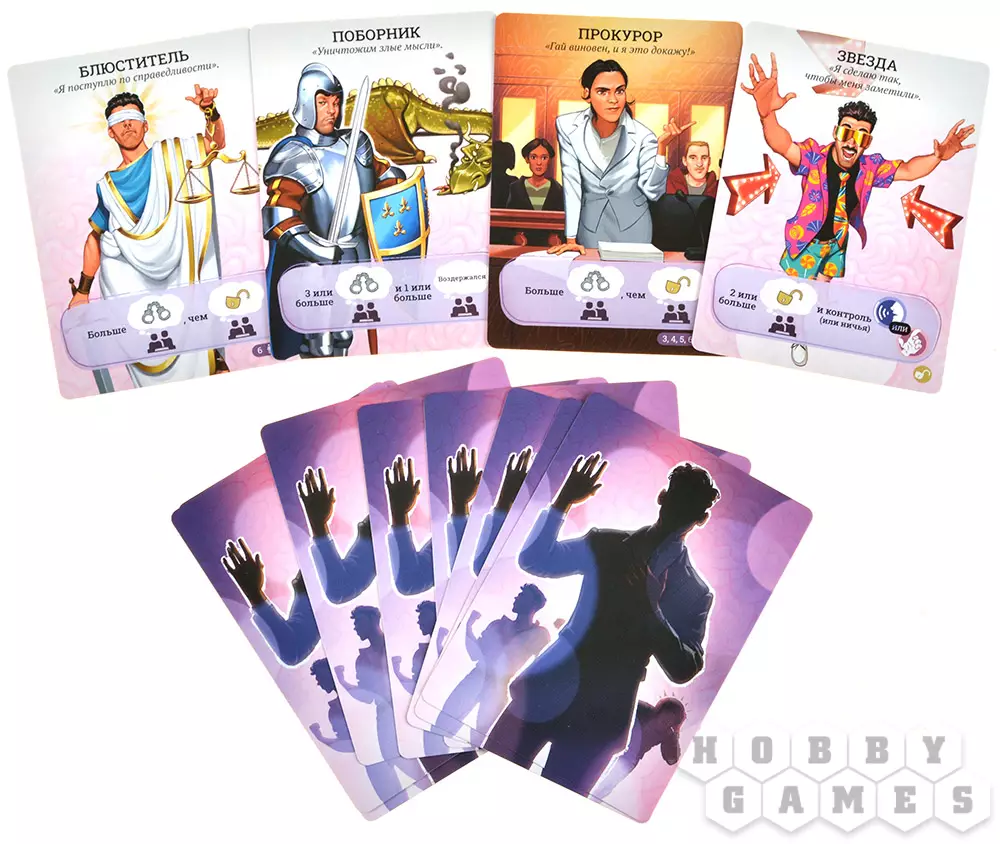Вначале игроки получают карты ролей, в которых содержится цель, которую они должны достигнуть к концу игры, чтобы победить. Победителей может быть несколько, в том числе вместе с прокурором, цель которого всегда неизменна – упрятать Гая Джонсона за решётку.