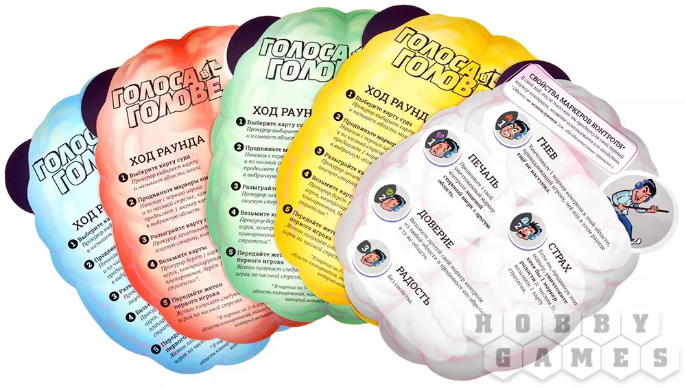 Как уже было сказано где-то вначале, победителей может быть несколько. Каждый голос в голове Гая преследует свою личную цель, например, контролировать больше всех областей мозга, и чтобы Гай был обвинён в преступлении. А может и вовсе не иметь жетонов контроля на конец игры, и чтобы Гая оправдали.