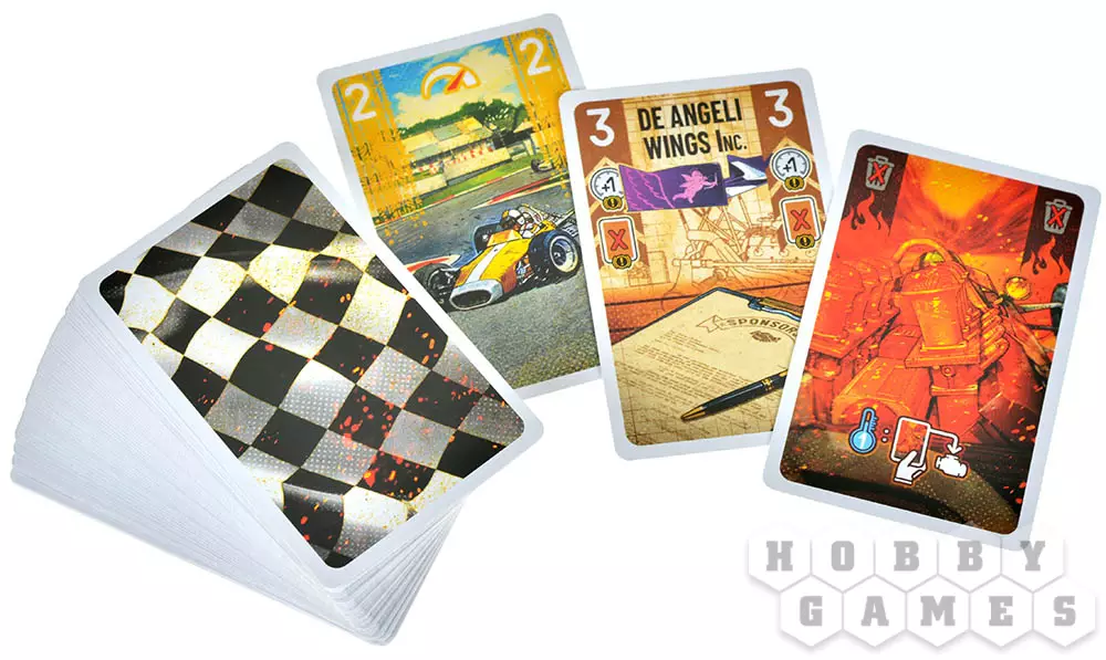 Этап 3. Открытие карт и перемещение: сложите все числа с разыгранных вами карт – их сумма определяет вашу скорость и количество клеток, на которое вы продвинетесь. Будьте осторожны и внимательны! Карты стресса могут повлиять на ваш результат. Этап 4. Адреналин. Вы проходите данный этап только если перемещаетесь последним в раунде. Адреналин помогает отстающему игроку: он получает дополнительные символы для применения на следующем этапе. Этап 5. Реакция. На этом этапе вы применяете все доступные вам символы с разыгранных карт в любом порядке. Можете ускориться и переместиться на ещё одну клетку, но для этого придётся сбросить карту нагрева с ячейки двигателя. А ещё можно охладить двигатель! Для этого переложите карты нагрева с руки в соответствующую ячейку на своём планшете. Этап 6. Слипстрим. Пора идти на обгон! Если ваше перемещение закончилось на соседней клетке сбоку или позади другого болида, можете переместиться ещё на 2 клетки вперёд! Однако есть ограничение: слипстрим нельзя использовать для пересечения финишной черты.