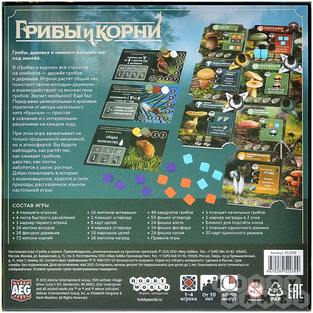 В мире природы царства Грибов и Растений связаны тесной дружбой, называемой симбиозом. Каждый участник этого процесса поддерживает другого, создавая живую гармонию. В этом удивительном союзе грибы помогают деревьям расти и крепнуть, а деревья в ответ заботятся о своих грибных партнёрах. Именно так поддерживается баланс и развивается лес. И именно этот процесс природной взаимовыручки воплощён в данной настольной игре.