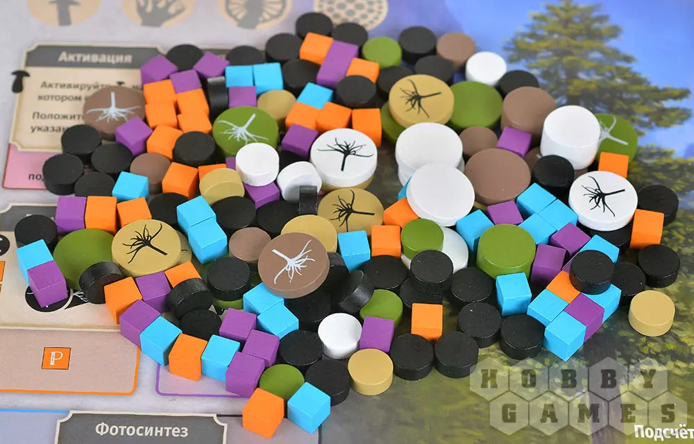 Игра завершается, когда один из участников достигает края планшета углерода, после чего у всех есть последний шанс укрепить свои позиции. Победителем становится игрок, набравший наибольшее количество очков к концу игры. Сравнивайте достижения – и пусть победит самый мудрый хранитель леса!