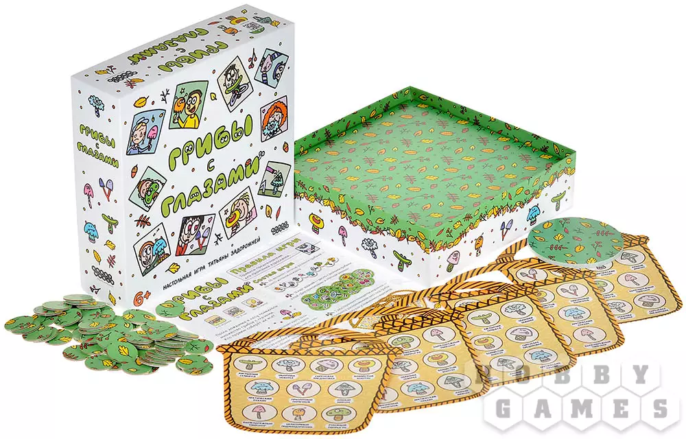Пора на охоту! В начале каждого раунда лес загадывает вам задачу – карточка покажет, какого именно глазастика нужно отыскать. А дальше начинается самое весёлое: все игроки дружно запускают руку в коробку-полянку и нащупывают жетоны, пока кто-то не крикнет "Нашёл!". Ваша цель – первым собрать полную коллекцию из десяти разных представителей грибного царства.