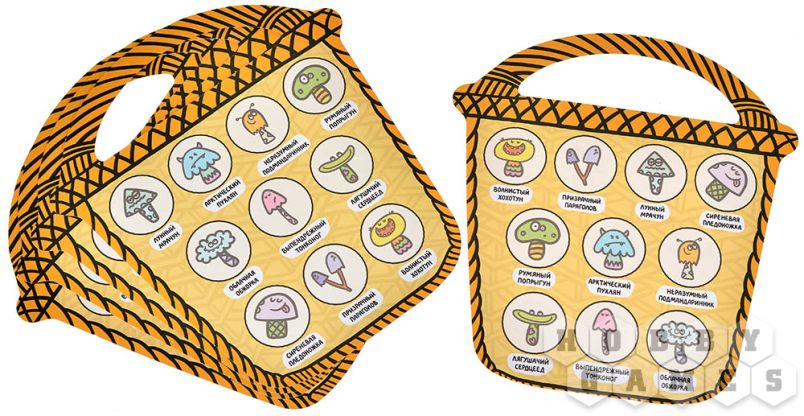 Игра продолжается до тех пор, пока один из собирателей первым не заполнит свою корзинку до краёв, собрав в ней полную коллекцию – все десять разных грибов с глазами!