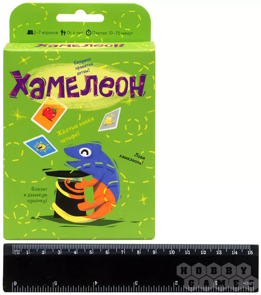 В начале игры участники получают специальные карты с цветом, картинкой и цифрой. Чтобы победить, необходимо получить карты с этими цветами, картинками и цифрами. Как их достать? – придётся перенимать тактику хамелеона! Карты с кона открываются одна за одной, нужно быстро взглянуть на карту и успеть накрыть карту рукой быстрее, чем другие игроки. Но чтобы игроки бездумно не колотили по картам, накрывшему карту игроки придётся назвать все элементы на карте, если всё правильно, то карточка достаётся вам.