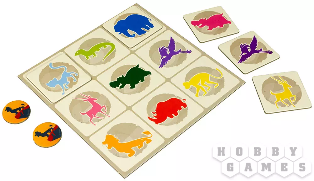 Перед игрой все участники должны познакомиться с карточками со зверями и правильно произнести названия и цвета всех зверей вслух. После этого карточки перемешиваются и складываются стопкой в центре стола. Каждый игрок получает планшет и выбирает лицевую или тыльную сторону планшета. Планшет представляет собой поле 3х3 клетки, а задача игроков – заполнить всё это пространство фишками быстрее всех. В свой ход ведущий берёт жетон и называет животное на нём. Тот, у кого на планшете нарисован этот зверь такого же цвета, забирает жетон и закрывает им соответствующее изображение на своём планшете.
