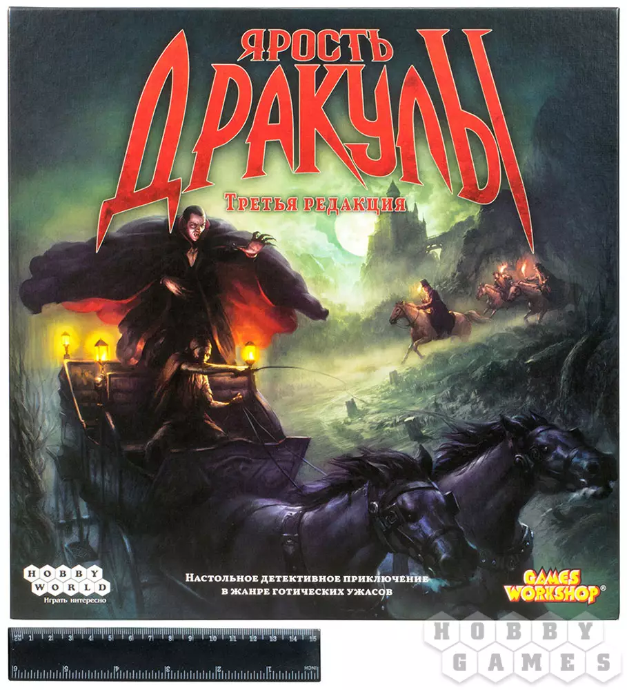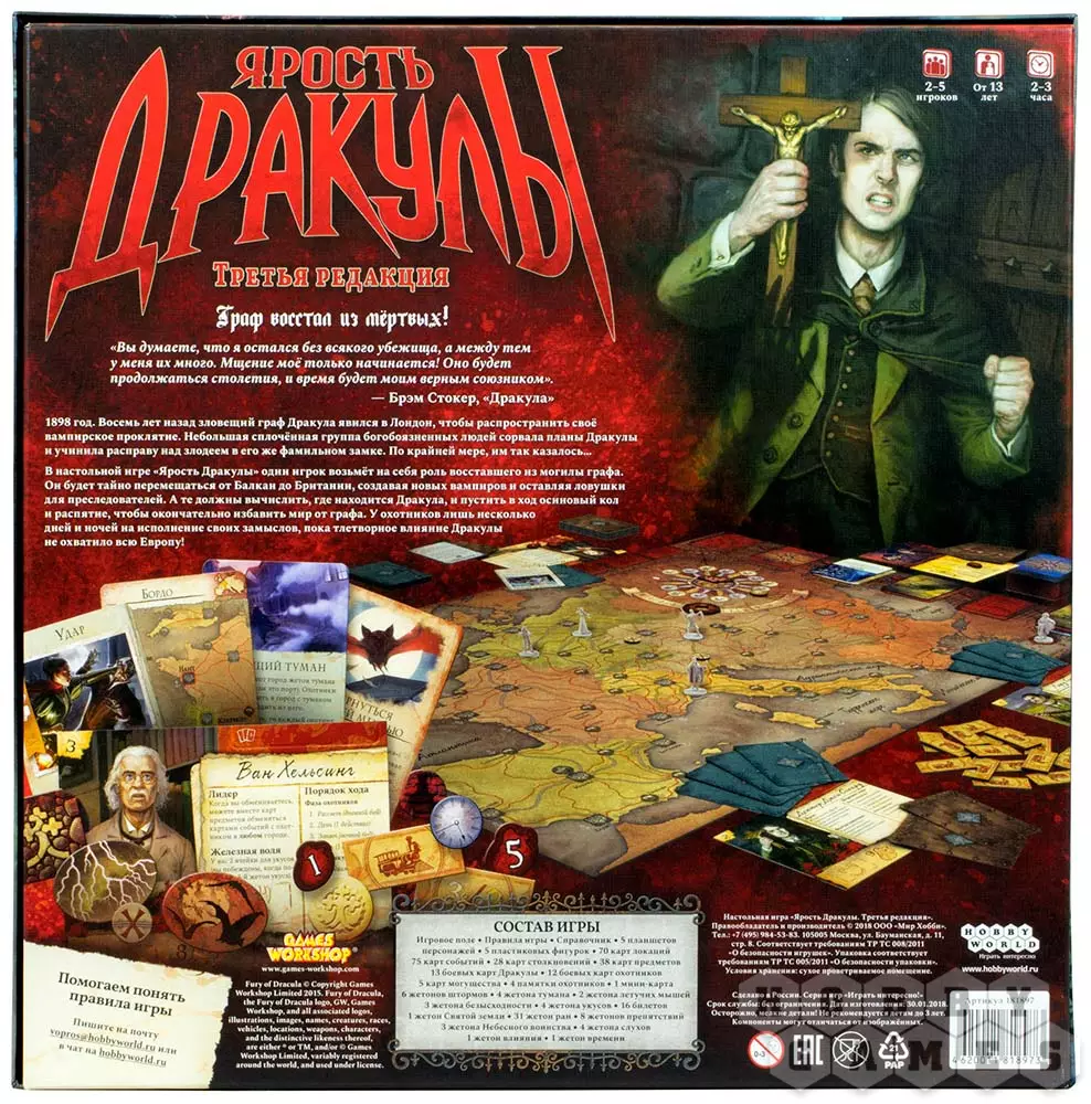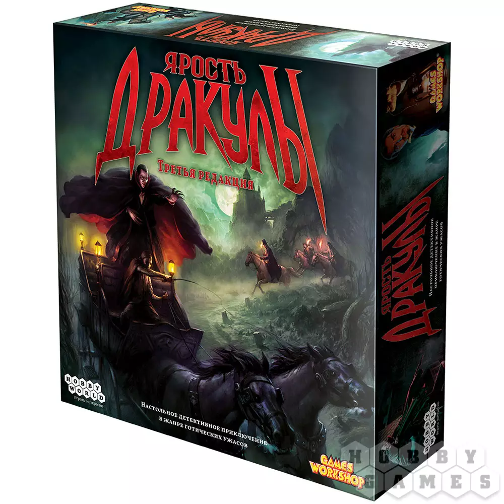 "Ярость Дракулы. Третья редакция" – это новое издание известной полукооперативной игры для 2-5 игроков, созданное по мотивам классического романа Брэма Стокера. Это дедуктивная игра, в которой один игрок берёт на себя роль Дракулы, а от одного до четырёх игроков берут под своё управление охотников. Эти стороны абсолютно уникальны и отличаются не только механиками игры, но и условиями победы. Дракула по ходу игры передвигается тайно, пытается ускользнуть от охотников, а попутно создаёт новых вампиров по всей Европе, приближая свою победу. Охотники же пытаются подготовиться, выследить Дракулу, а затем победить его, чтобы навсегда положить конец его роду.