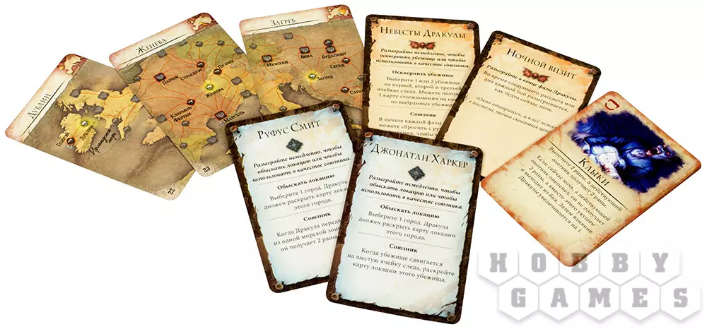 Так как охотники играют сообща, они могут и будут общаться между собой, планировать ходы, читать текст карт и прочее. Все эти действия совершаются в открытую, а игрок-Дракула слушает и запоминает…