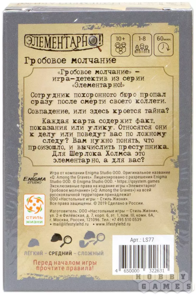 Дарья27.07.2021 23:19Прошли сегодня с друзьями. Сюжет довольно интересный, как и многие в серии игр "Элементарно!", но было несколько сложновато изначально из-за большого количества действующих лиц в игре. Рекомендую к ознакомлению, но, думаю, если это ваш первый сюжет - будет несколько сложно. Хотя лишних карт, отводящих от сюжетной линии, оказалось меньше, чем в "Пропавшем без вести" и "Проклятой шахте".