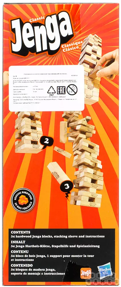 Напомним правила, если вдруг кто-то не знает их – в центре игрового стола из деревянных брусков, входящих в комплект игры, выстраивается башня. Определив, кто первым ходит, игроки по очереди вытаскивают любой брусок из конструкции и кладут его на самый верх башни. Поначалу игровой процесс не вызывает никаких трудностей, но когда доходит до момента, что башня уже буквально шатается и того и гляди рухнет, приходится проявить максимальную аккуратность и сосредоточенность. Ведь тот игрок, от чьей руки падёт вся эта конструкция, объявляется проигравшим. Благодаря простоте и быстроте партий, "Дженга" уверенно держит лидирующие позиции среди настольных игр для вечеринок, для компании и для всей семьи.
