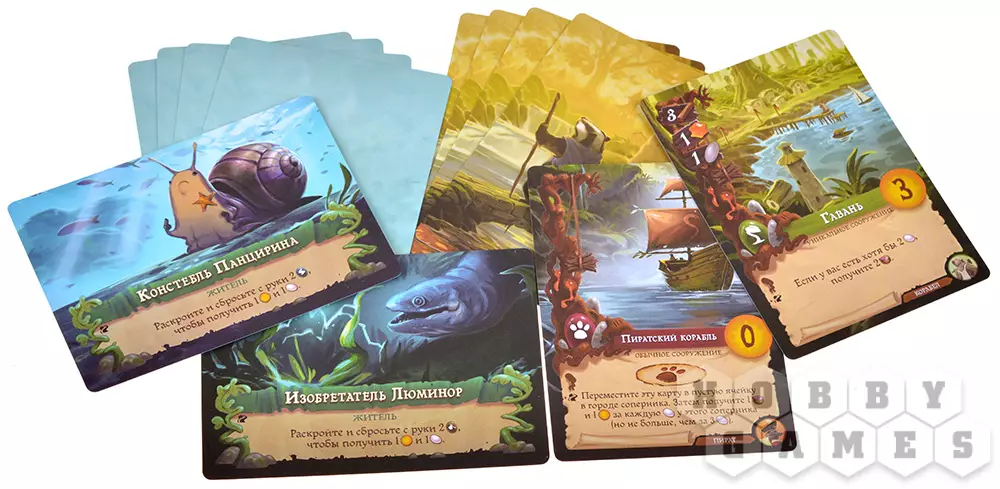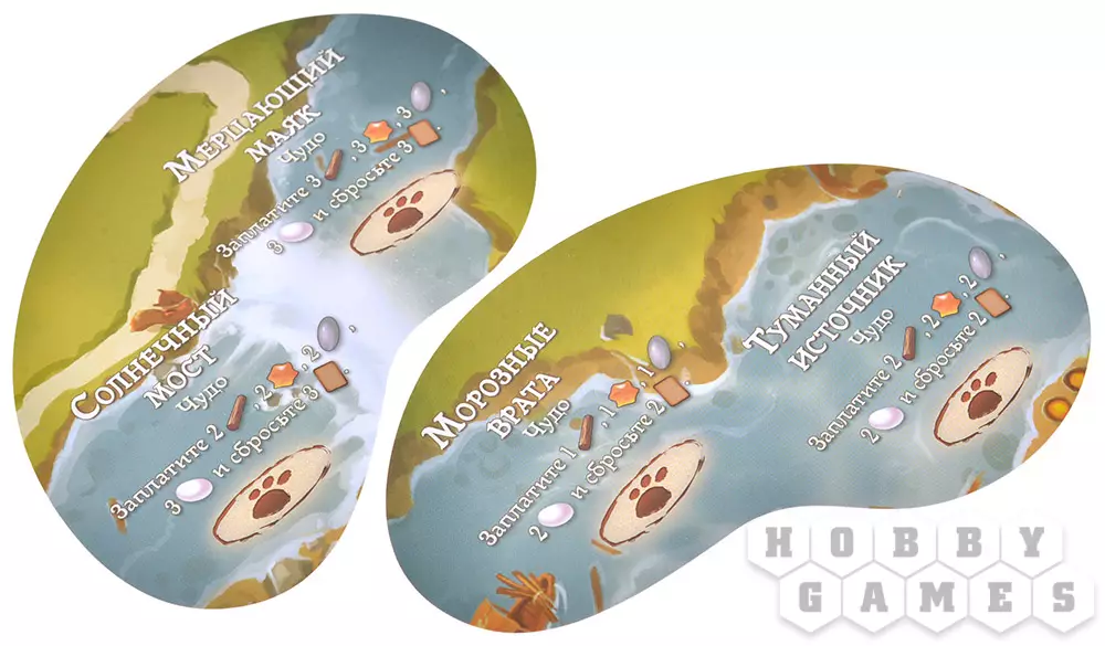 Дополнение "Жемчужный ручей" не только добавляет в игру новые карты, фишки жемчужин и новых обитателей – лягушек и выдр, но и повышает сложность игры в целом.