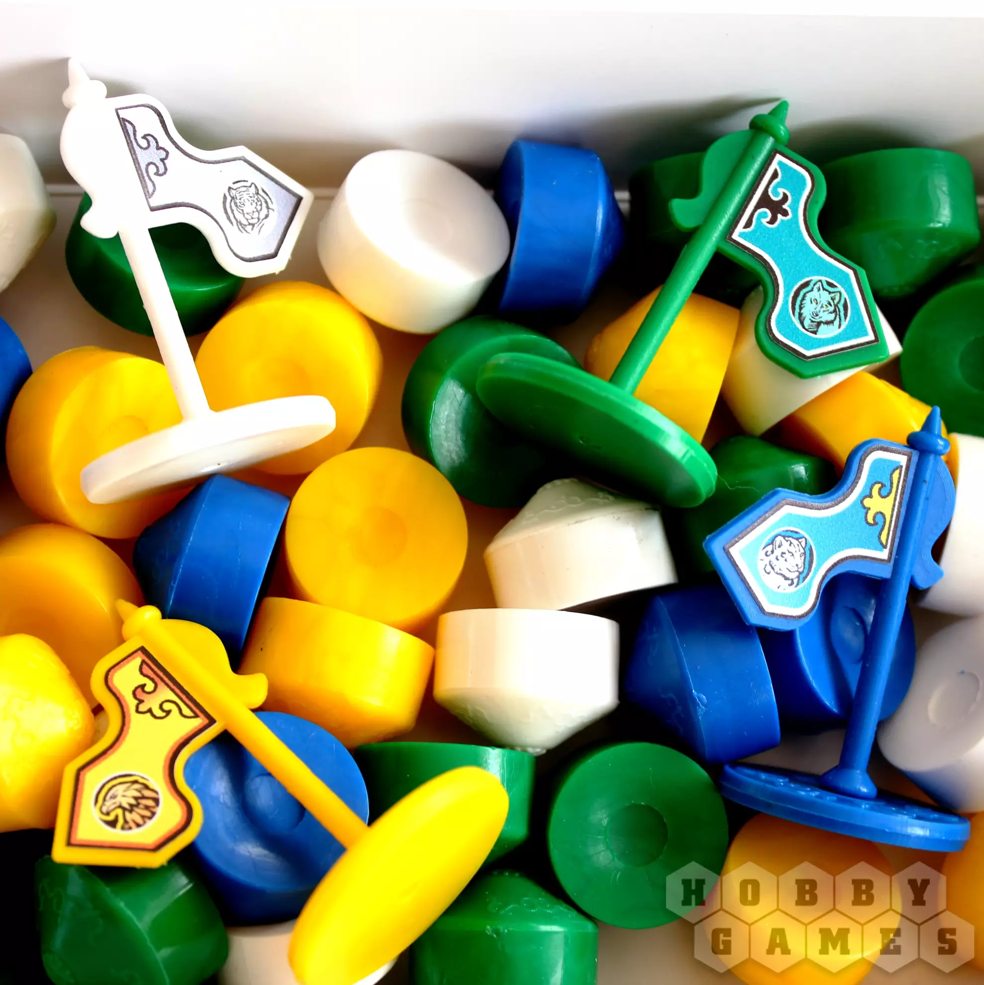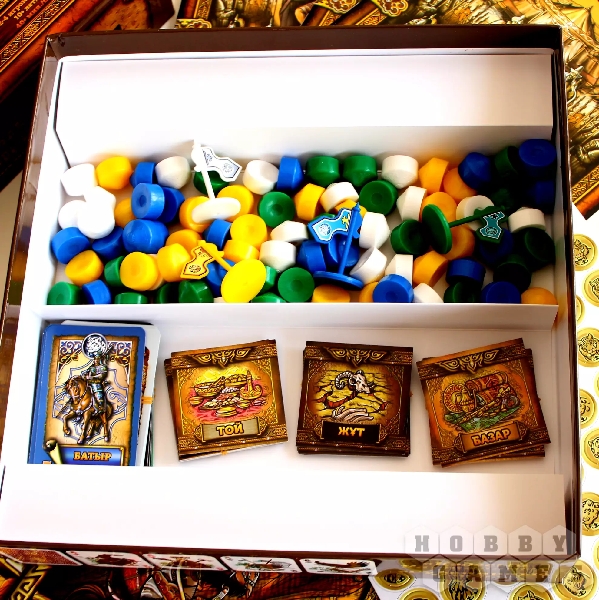 Цель каждого из участников – объединить под своим флагом казахские народы быстрее своих соперников. Игра не только развивает логическое и стратегическое мышление у игроков, но и знакомит их с богатейшей историей своего государства. Игра отлично подойдет как для интересного детского праздника, так и для тихого семейного вечера.