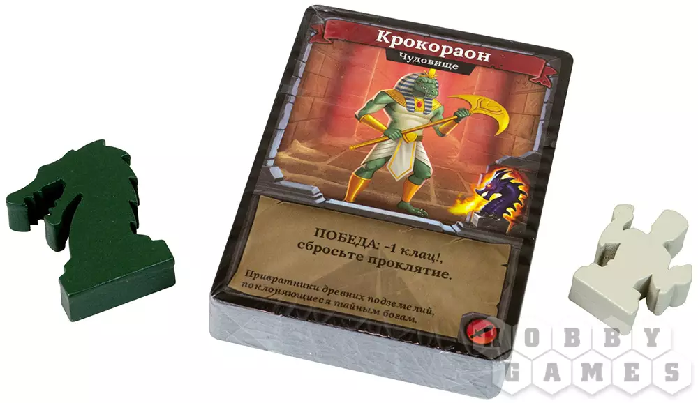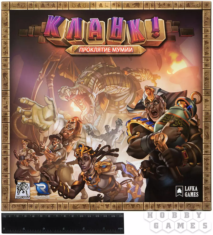 В дополнении "Проклятие мумии" для настольной игры "Кланк!" храбрые искатели сокровищ узнают правду! Вам предстоит разыскать невероятные сокровища, но путь будет преграждать бессмертная мумия, которая не хочет делиться своим богатством. Каждый раз, когда мумия проклинает вас, вы становитесь ближе к встрече с древним драконом – Кроксобеком, который устроил себе логово на самом дне пирамиды. Дополнение добавляет 40 новых карт в вашу колоду подземелья.