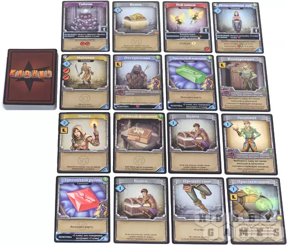 "Кланк!" – это колодостроительная настольная игра, в которой у каждого игрока есть своя колода, и её улучшение – один из важнейших элементов игрового процесса. Вам предстоит покупать новые карты по ходу игры, которые позволят умыкнуть самые большие ценности в пещерах.
