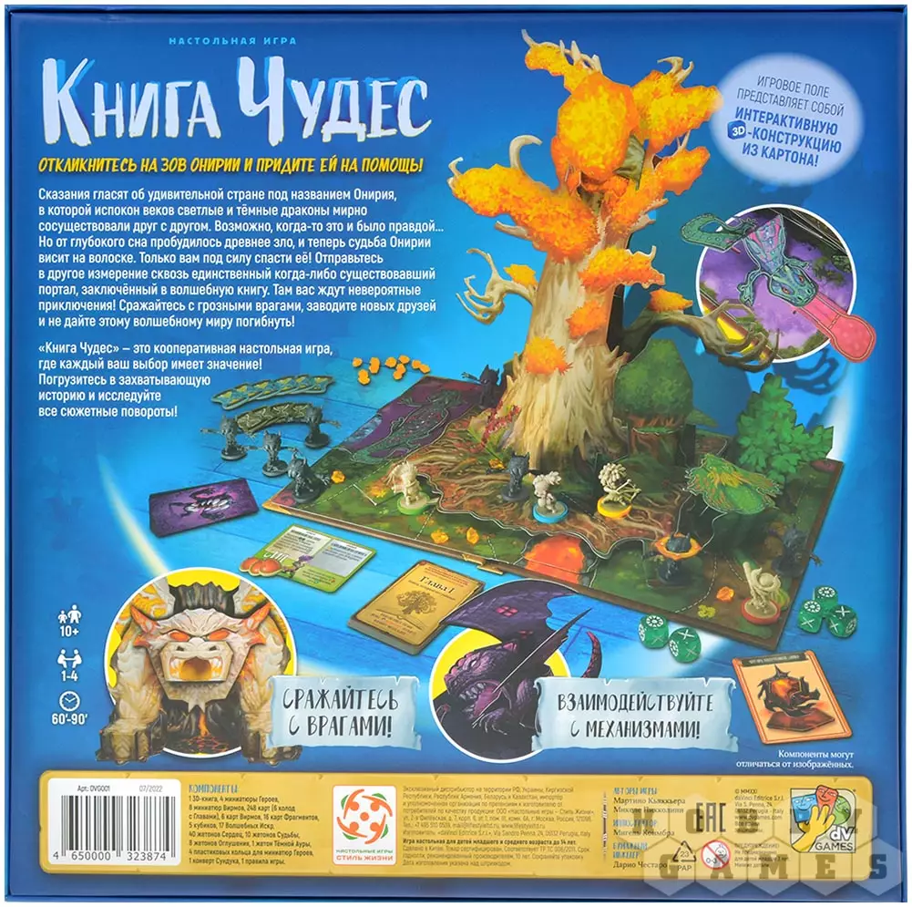 "Книга чудес" – кооперативная игра, что расскажет историю фантастической Онирии, в которой вы сыграете главные роли. Объединитесь с друзьями и пройдите увлекательный сюжет от начала и до конца. С помощью книги вы будете исследовать этот невероятный мир, а вместе с ним и интерактивное поле, что таит множество секретов: перемещаясь по нему, вы будете сражаться с противниками и разгадывать загадки. Каждая глава будет открывать новую часть поля: игра постоянно меняется, а сюжетные линии меняются и переплетаются, позволяя вам создать собственную историю. Герои будут становиться сильнее и получать новые способности, но и враги не дремлют!