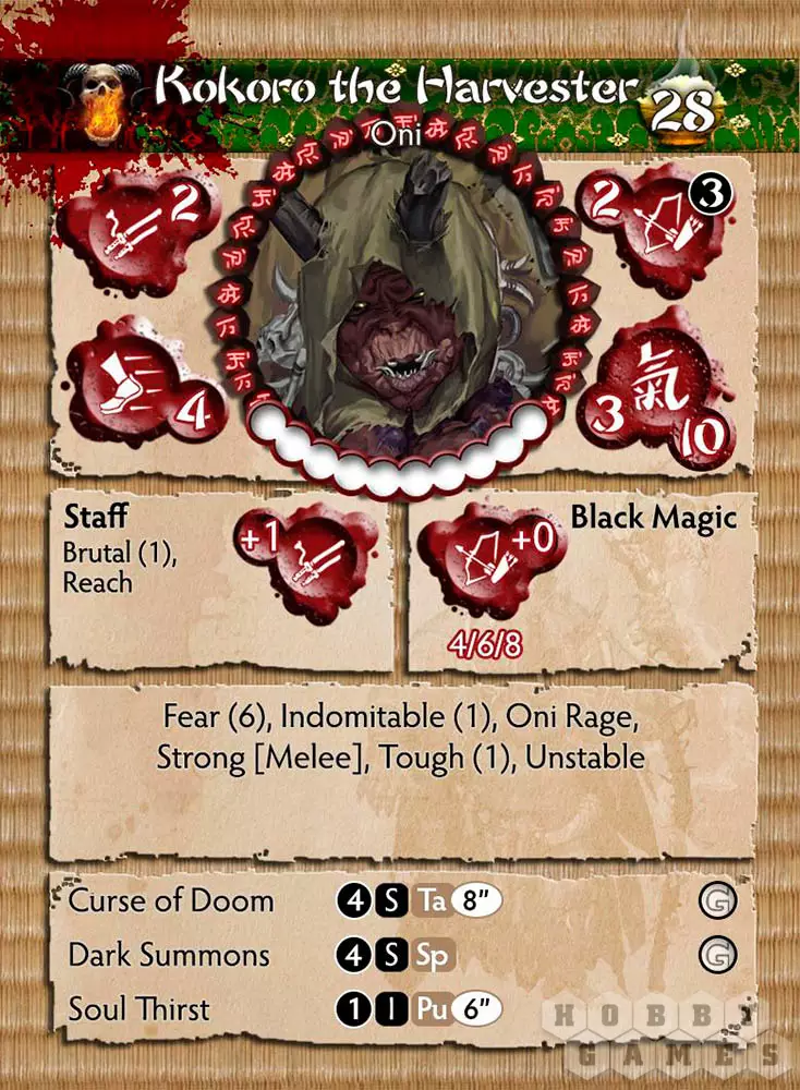 Kokoro редко встречается среди войск Oni. Он вызывает у других Oni и страх, и уважение, чувства, которые им чужды. Именно это позволило ему не только дожить до старости, но и набраться сил. Никто не знает, сколько лет Oni могут ждать своей естественной смерти, но с Kokoro этого пока не произошло. Известно, что Kokoro поглотил бесчисленное количество душ. Те, кто его почитает, называют Harvester. После встречи с Kokoro не остаётся ничего живого. И никого живого.