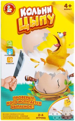 Чтобы сыграть в "Кольни цыпу", посадите цыпу в яйцо, которое теперь нужно аккуратно закрутить и установить в центр стола. Ваша задача – поочерёдно брать мечи (бутафорские!) и вставлять их в отверстия на скорлупе. Первый, кто заденет скрытый внутри механизм и разбудит маленького цыплёнка, станет победителем! Малыш наверняка будет недоволен, что ему не дали подремать, зато вы сможете поумиляться тому, какой он всё же крошечный и хорошенький! Только посадите его потом обратно – пускай всё же отдохнёт.