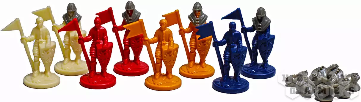 И в моем случае, два игрока не имеют рыцарей вовсе (по 0 очков), третий игрок имеет одного рьяного-однофлажкового рыцаря (1 очко), и четвертый игрок - двух рьяных-однофлажковых (2 очка).