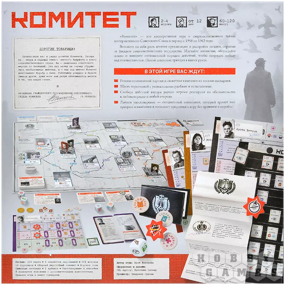"Комитет" – это сюжетная кооперативная настольная игра в жанре америтреш, где игроки становятся частью секретной организации, охраняющей границы реальности. В каждом раунде вам предстоит коллективно решать, как распределить доступные очки действий, исследовать города на карте европейской части СССР и разбираться с таинственными происшествиями.