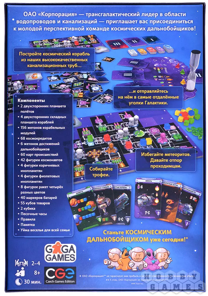 Когда все игроки достроят свои космические фуры, вы отправитесь в полёт полный опасностей и прибыли! Неизвестные планеты полны различными ценными товарами, а по пути до них вас могут настигнуть космические пираты. Но вы ведь ко всему готовы, да? Пушки мощные поставили? А трюмы просторные сделали? А экипаж набрали? А всё, надо было лучше готовиться. Но если кто-то вас обскакал, не переживайте: в следующем рейсе у вас будет корабль побольше!