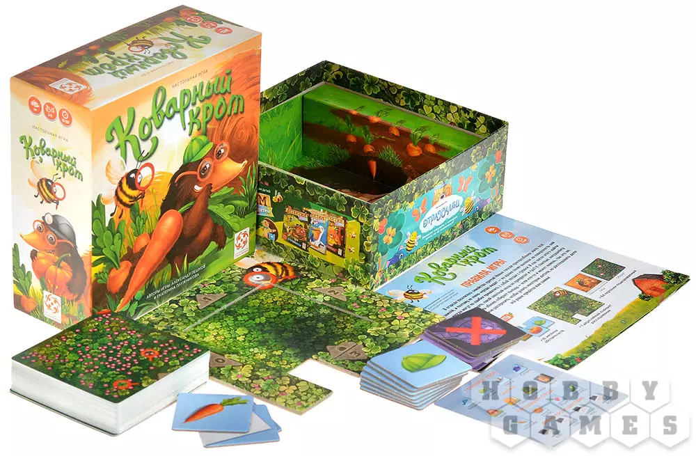 "Коварный крот" – это настольная игра для самых проницательных садоводов! Вам предстоит расследовать загадочные пропажи овощей с грядок. Ваша цель – вычислить, какой именно овощ он припрятал в этот раз. И в какой из своих многочисленных норок его спрятал! Главной особенностью игры является детективный геймплей, построенный на дедукции и внимании. Яркое игровое поле и очаровательные компоненты создают тёплую и уютную атмосферу, которая понравится и детям, и взрослым. Это идеальный способ весело и с пользой провести время в кругу семьи или друзей, развивая логическое мышление.