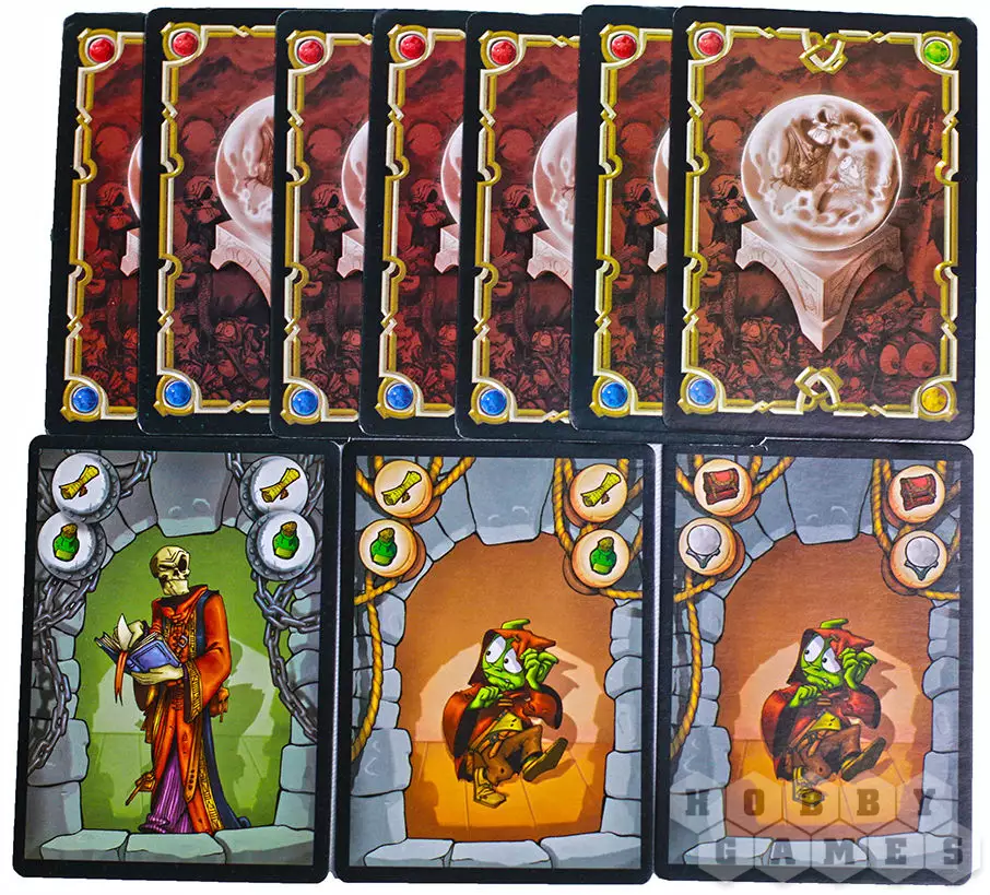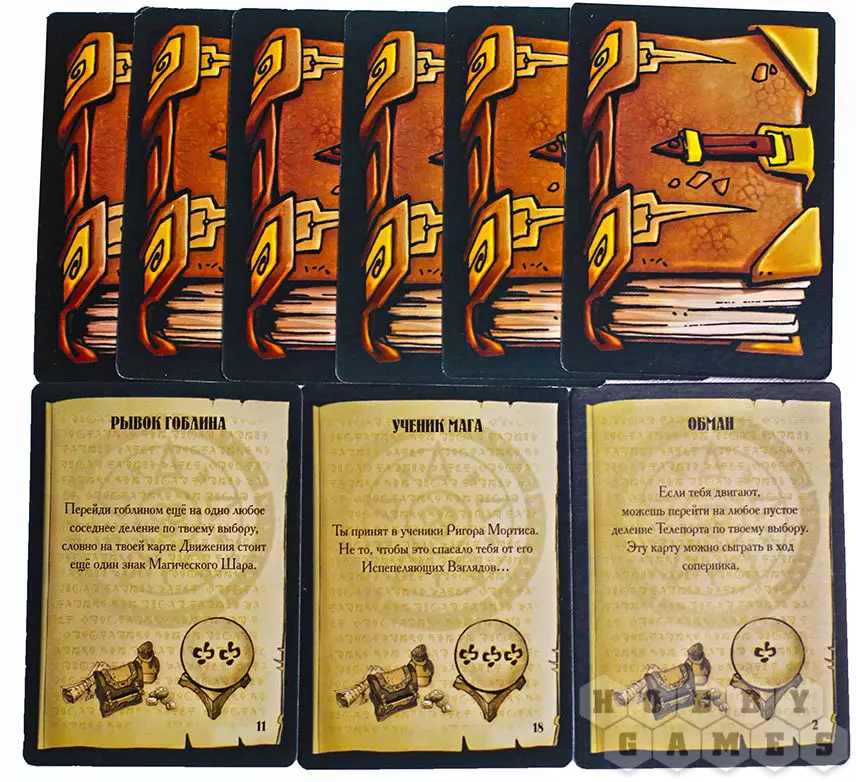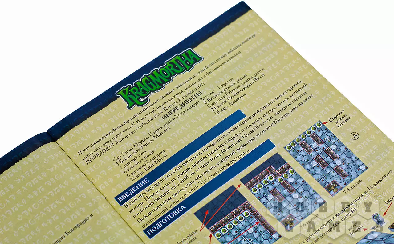 Но изюминка "Крагморт" не в этом, а в Испепеляющих Взорах. Их в избытке получат гоблины от своего властелина. Карточки содержат разные забавные наказания: до конца игры говорить исключительно сквозь зубы, или держать карточку с наказанием подбородком, или все время стоять на одной ноге – все наказания будут в этом же духе. Можно представить, какое веселье вас ожидает!