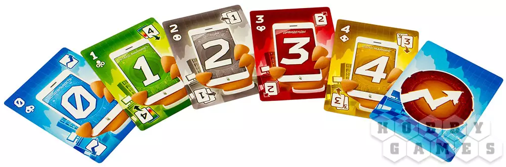 Рядом с колодой лежит карта тренда, которая указывает, как именно игрокам можно класть карты: если тренд идёт вверх, то ваша карта должна иметь больший номинал, чем предыдущая. И наоборот, если тренд летит вниз, то и карта номинала должна быть меньше. Специальные карты разыгрываются свободно, то есть не зависят от рынка. Карта тренда переворачивается каждый раз, когда все игроки не смогли полноценно разыграть две свои карты.