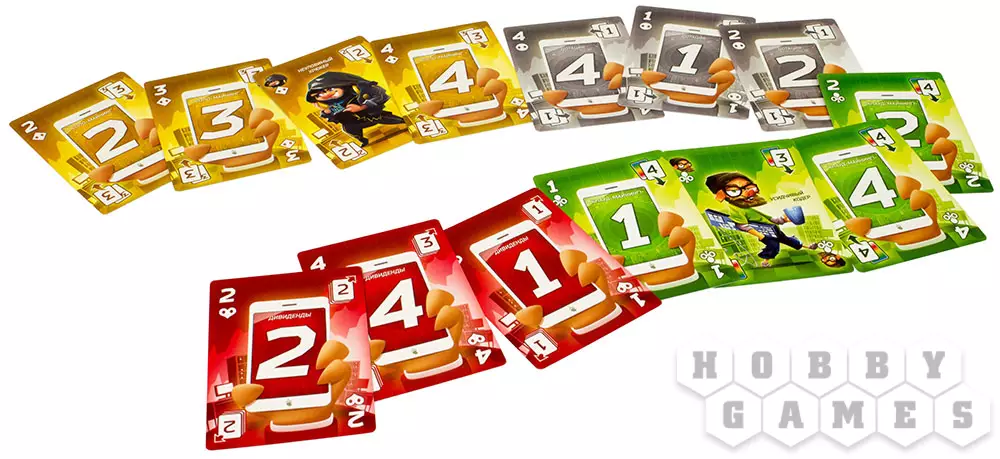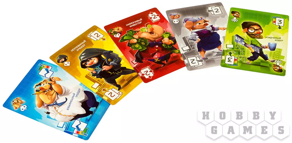 Каждый Свинтус получает на руки капитал в виде 8-10 карт, который лучше не светить другим игрокам. В свой ход игрок должен разыграть две карты с руки, а если не может это сделать – то взять две карты из стопки. Карты имеют свой номинал и цвет, также есть специальные карты. Вот здесь и начинаются отличия. У каждого из пяти цветов имеется своё место под розыгрыш карт, раньше же стопка была общая.