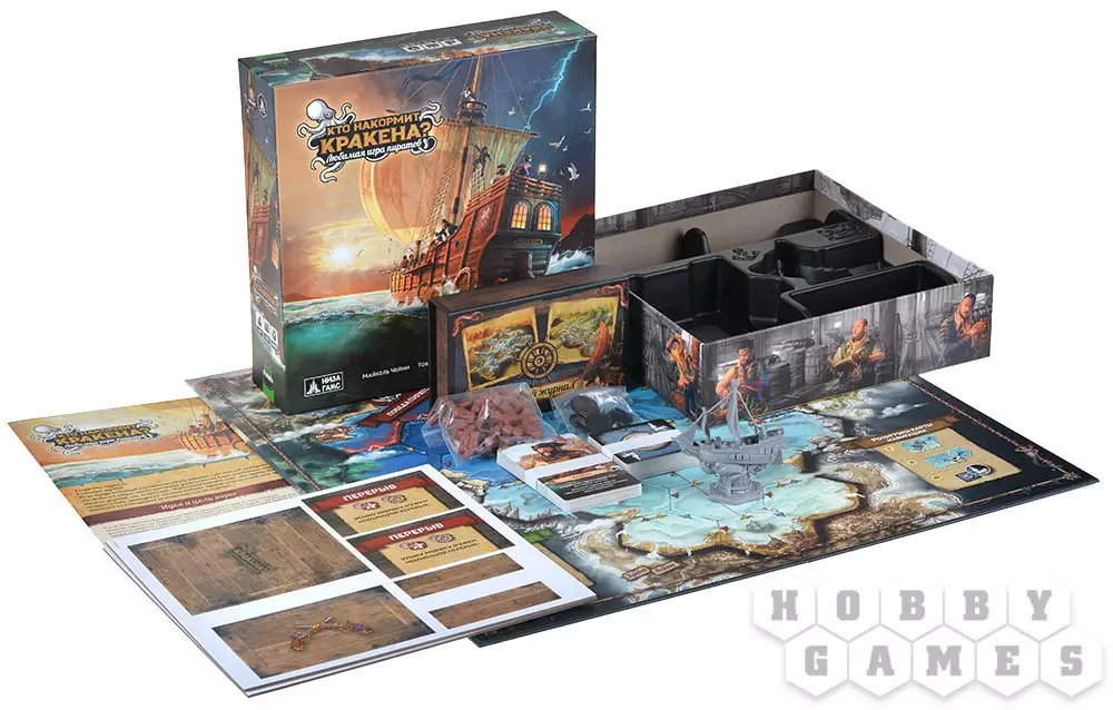 "Кто накормит Кракена?" – это атмосферная настольная игра для большой компании, в которой вам предстоит проверить свою социальную дедукцию. Все вместе вы отправляетесь в экспедицию на корабле "Муссон", вот только ваша команда весьма разношёрстна. Каждый игрок станет сторонником одной из трёх фракций: моряки, пираты и служители таинственного культа. Однако никто не будет знать, кто кем является. В этом и кроется основная задача каждого игрок – вычислить предателя и понять, кому можно доверять. У каждой стороны команды своя цель – привести корабль в конкретное место. А для этого нужно управлять навигацией корабля. Каждый раунд 3 новых игрока будут становиться капитаном, штурманом и старпомом, которые и зададут направление движения. Сможете ли вы привести корабль в назначенное место, приведя свою команду к успеху и не оказаться за бортом? Проверьте это!