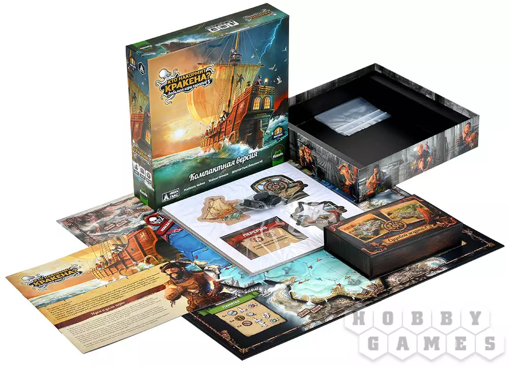"Кто накормит Кракена?" проверит вашу социальную дедукцию и прекрасно развлечёт большую компанию. Ваша задача – повернуть корабль в нужном вам направлении. Честные моряки стремятся в Лазурный залив, коварные пираты – в Кровавую бухту. А третий игрок, тёмная лошадка, желает разбудить Кракена – и для этого ему нужно пожертвовать кем-то из экипажа или затопить судно, сделав его подношением чудовищу. Вас ждут заговоры, интриги, предательства и жаркие споры – скучно не будет! Сражайтесь за выживание, но не забывайте – Кракен не дремлет!