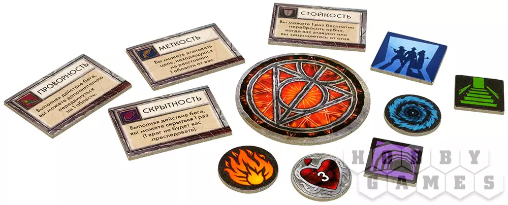 Фаза действий – игрок может выполнить три действия из шести доступных (два уникальны для сценария). Действия могут повторяться, а базовыми являются бег, атака, отдых и обмен