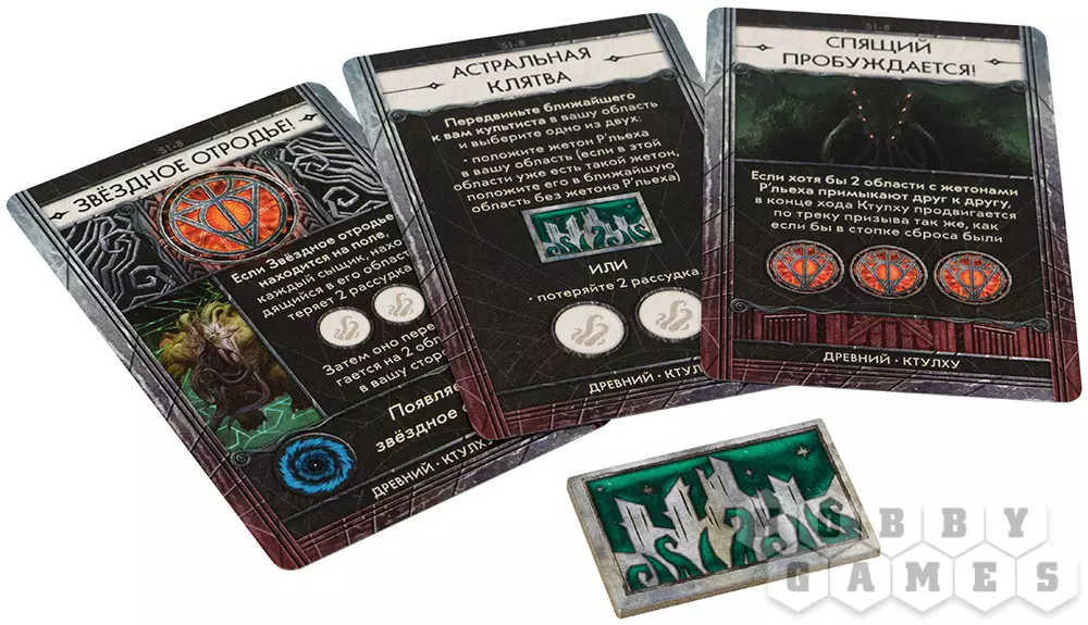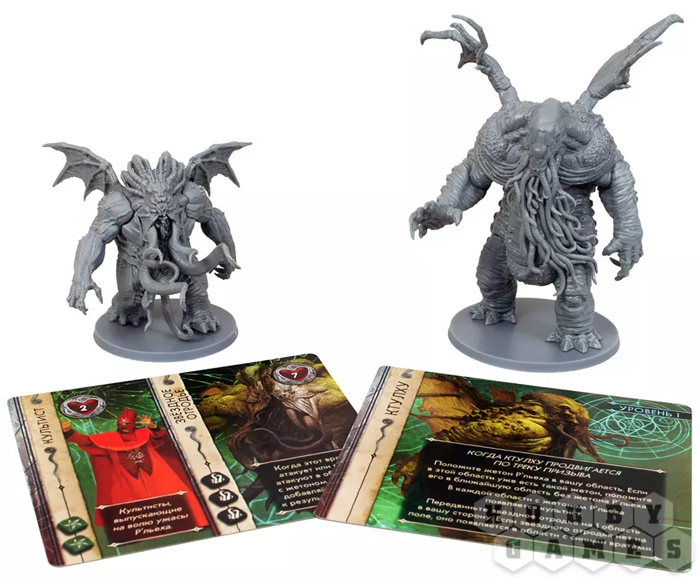 Также следует отметить качество компонентов и особенно игровых миниатюр – такой Ктулху на поле действительно внушает страх!