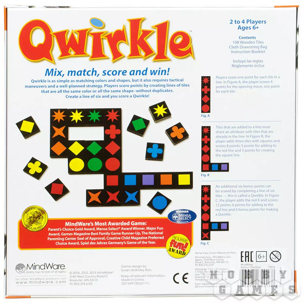 Итак, знакомьтесь: Qwirkle, или же "Квёркл". Всё гениальное, как известно, просто – нужно выкладывать на стол фишки, выставляя их по цвету или по рисунку. За более длинные комбинации фишек начисляется больше победных очков. Тот из игроков, кто завершает ряд фишек, получает дополнительно сразу шесть очков, приближая себя к победе.