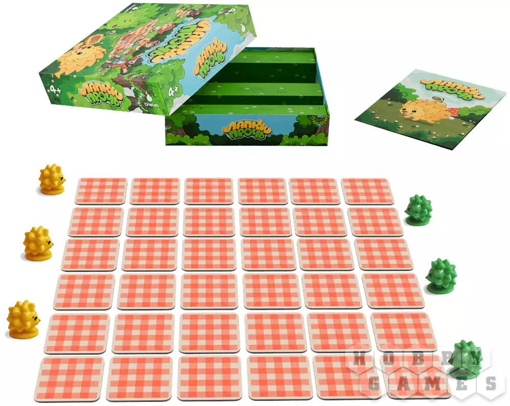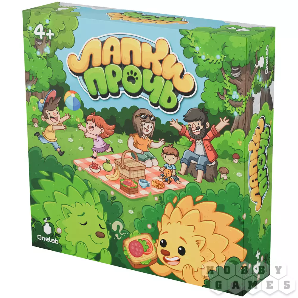 "Лапки прочь" – это развивающий кооператив для детей и их родителей. Здесь все объединены общей целью и вместе пытаются обхитрить шустрых ёжиков. В центре стола квадратом выложены жетоны рубашкой вверх. Вам предстоит по очереди открывать по два из них: если картинки совпали – пара уходит в общую копилку, если нет – жетоны возвращаются на место. Но вот загвоздка – после каждого вашего хода ёжик продвигается вперёд и забирает один из жетонов с поля. Чтобы выиграть, нужно набрать семь пар быстрее, чем их утащат в уютные норки. Удастся ли вам обогнать хитрых воришек?