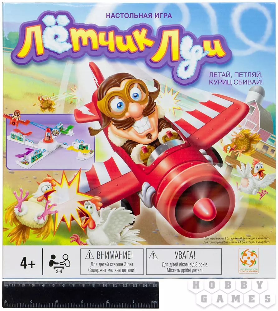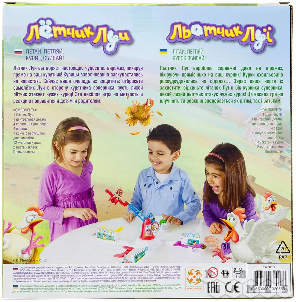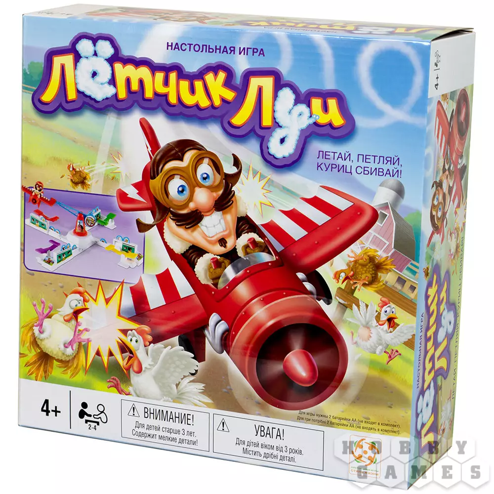 У каждого игрока на крыше курятника размещается по три птички, символизирующих жизни. Луи будет летать по кругу, опуская самолёт на опасную для пернатых высоту. Вовремя нажимая на рычаг, Вы будете подбрасывать самолёт выше. Победит тот птичник, чьи птицы останутся на крыше последними. Ну или победят все, если в самолёте Луи сядут батарейки!