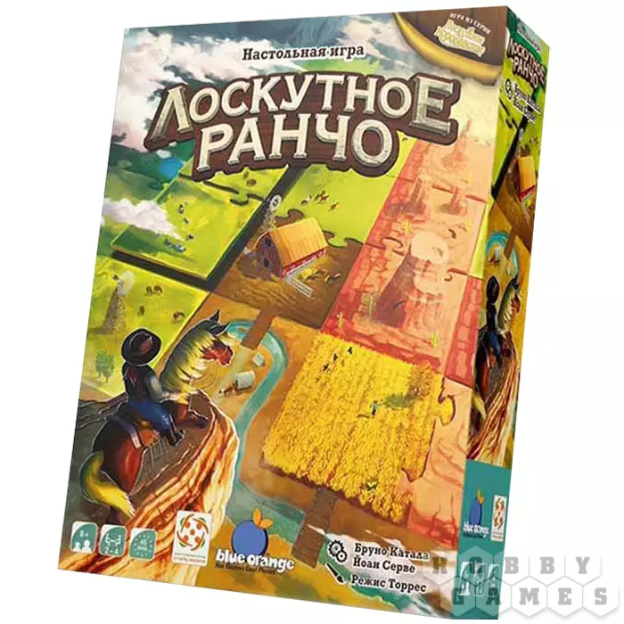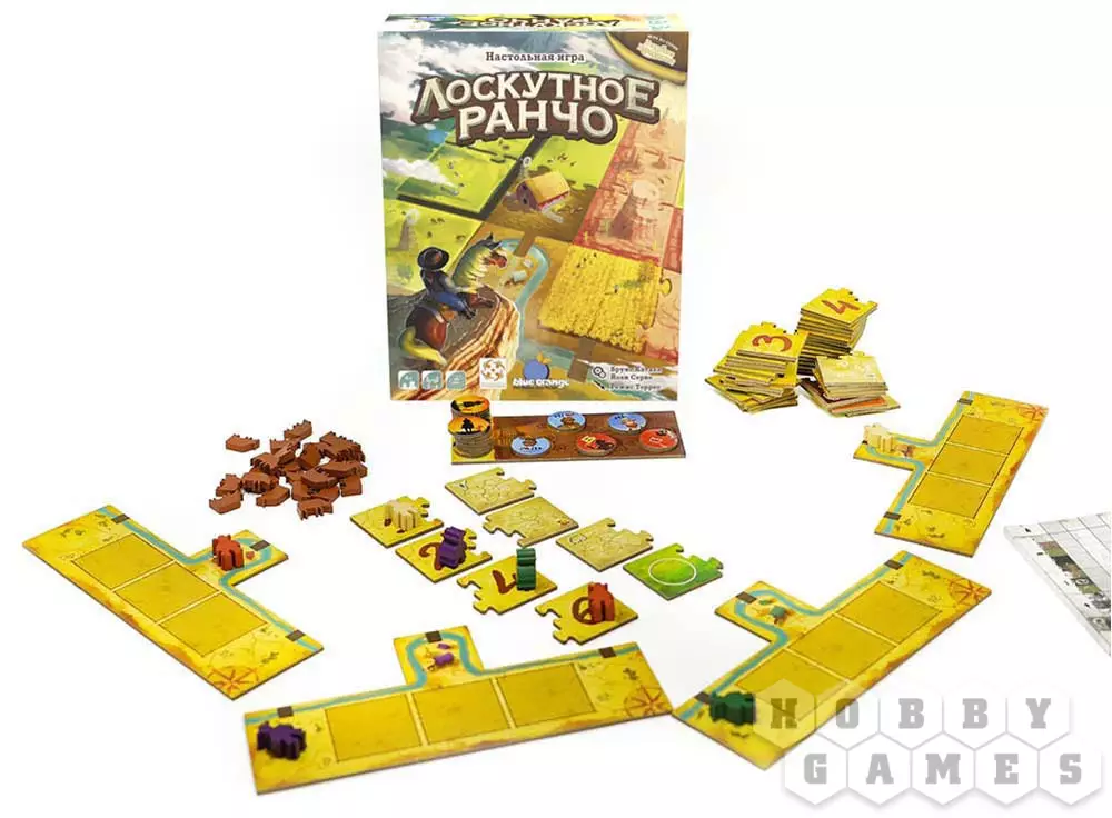 Настолка “Лоскутное ранчо” основана на механике домино, но вместо доминошек в игре используются лишь половинки домино квадратной формы. Словно пазлы собирайте из половинок свои собственные домино и набирайте больше всех очков успешными комбинациями, покорив тем самым Дикий Запад.
