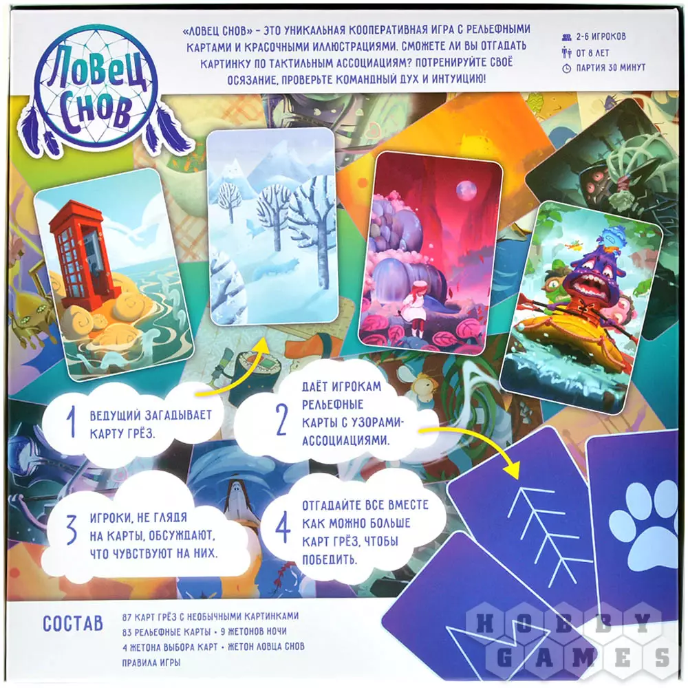 Добро пожаловать в страну поразительных грёз! В командной настольной игре "Ловец снов" вашему вниманию предстанут причудливые сюжеты, а вашей задачей будет "поймать сон", то есть разгадать эти самые сюжеты. А постараетесь вы это сделать не словами, а на ощупь! Закройте глаза и представьте свой самый удивительный сон... Необычная игра на ассоциации начинается!