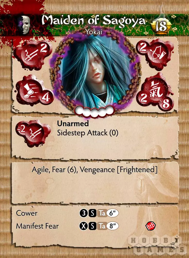 Поражённая молодым и неопытным асигару Takashi во время войны против Shiho, эта призрачная дева теперь бродит по болотам Sagoya, оплакивая безвременную смерть себя и своей семьи. Даже смерть не освободила от земной боли и страданий, поэтому она использует все свои силы, чтобы убить или покалечить любого, кому не повезло встретиться с ней. Призрак теперь преследует девушку-йокай, питающуюся страхом и посещающую места, где больше всего ощущается, будто её таинственным образом тянуло к нему. Она так же проклята, как и город, из которого она родом.