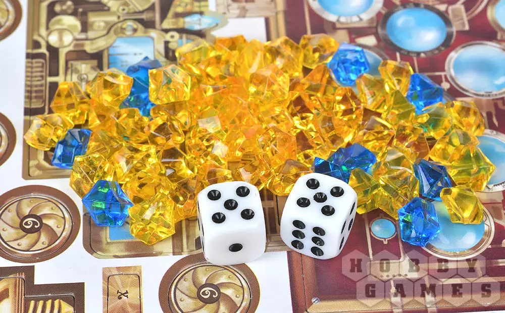 В начале игры каждый игрок получает кристаллики и готовится к разгадыванию изображений. Центральным и неотъемлемым элементом веселья является макроскоп – прибор с 12 окошками. Каждый ход вам предстоит бросать два кубика: какие числа вам выпадут, под таким номером вы и сможете открыть окошко или два на крышке макроскопа, чтобы увидеть через них небольшие части картинки. Чем меньше окошек открыто, тем больше очков можно заработать, так что подходите к делу взвешенно и с умом.