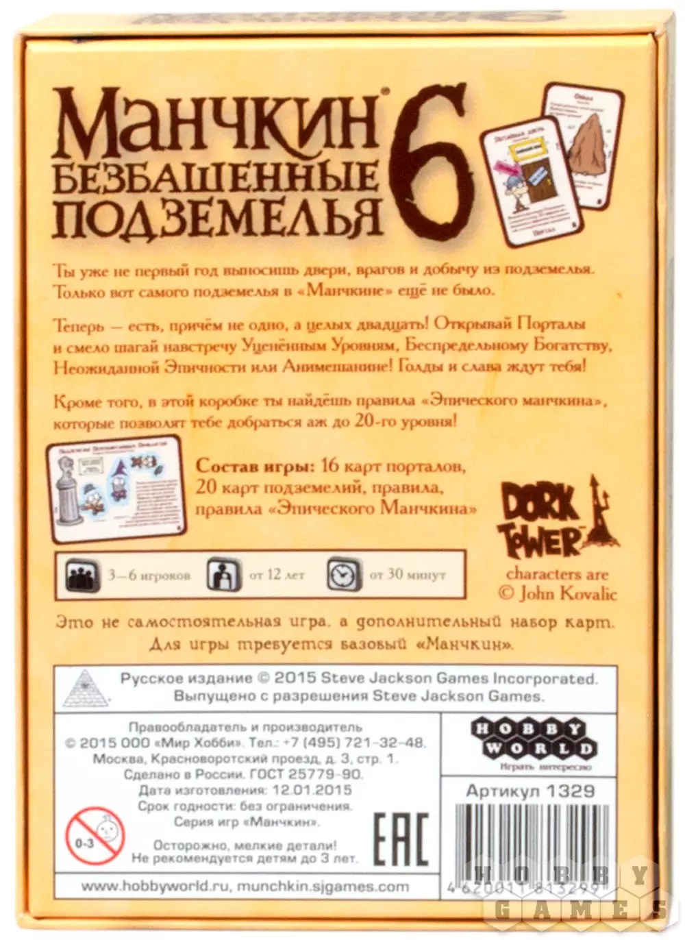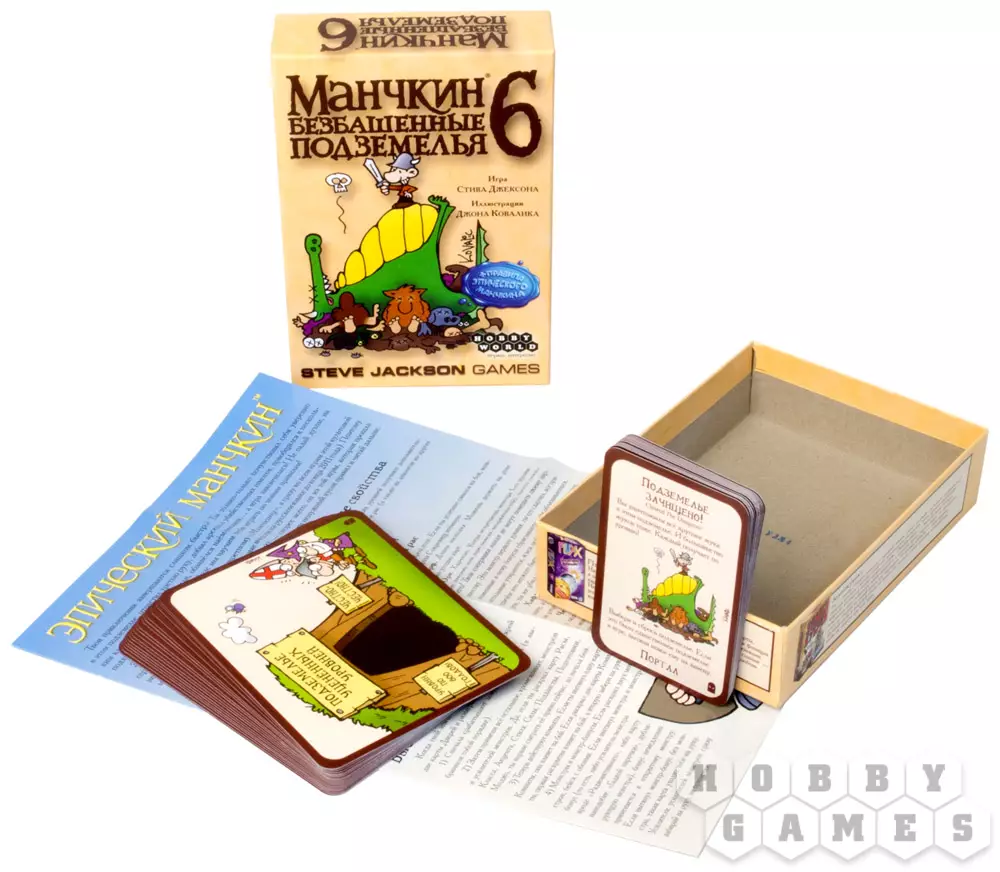 Оригинальное дополнение "Манчкин 6. Безбашенные Подземелья" удивит даже самых ярых манчкиноманов! Во-первых, теперь манчкины смогут не только вышибать двери, но и случайно заглянуть в портал, который ведёт в самое настоящее подземелье, а уж какие монстры и сокровища находятся в них – не знает ни одна живая (кхе-кхе) душа. А во-вторых, в коробке вы найдёте правила "Эпического Манчкина", которые станут настоящей находкой для любителей игры, ведь, помимо того, что теперь предстоит докачаться до двадцатого уровня, есть масса интересных дополнений. Ну что, манчкины, вы готовы нырнуть в самые страшные и потаённые подземелья? Тогда в путь!