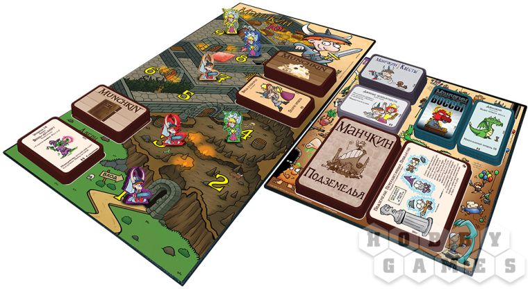 Итак, настольная игра "Манчкин" – это ролевая игра по форме, пародия по содержанию. Манчкины игроков ходят по подземелью, вытаскивают на свет божий тамошних чудовищных обитателей и либо раскаиваются в этом, либо получают за победу новые уровни и сокровища. Исход каждого подобного приключения (боя, короче) зависит от того, кто с чем на бой вышел. У игрока это уровень и бонусы/штрафы от шмоток, класса, расы и проклятий. У монстра это уровень плюс карты-усилители и разовые шмотки. Откуда шмотки у монстра? В Вашем бою могут принять участие и завистливые соперники: они могут помогать монстру и ослаблять вас. Поэтому, хотя в "Манчкин" и можно играть вдвоём, наберите на матч побольше народу: на руках будет больше проклятий, усилителей и зелий, которыми так легко изменить баланс сил в бою в любую сторону, и бдительные завистники не дадут никому из Вас выйти в единоличные лидеры гонки к 10-му победному уровню.