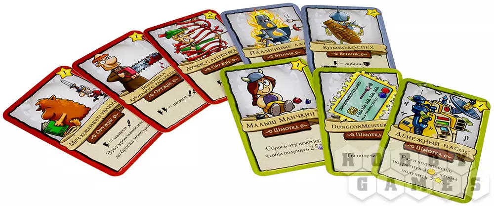 Вы – крутой манчкин, даже если не победили! Получайте награды, отмеченные на картах, опыт для получения уровня и новое снаряжение. После этого можно и прилечь, распределив очки навыков и добрав карты в руку. Ваш ход закончен, но приключение продолжается!