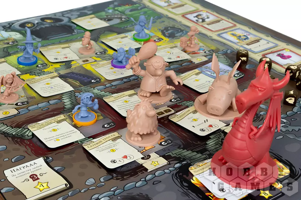 В "Манчкин: Подземелье" игроки становятся отважными, но хитрыми героями, каждый из которых обладает своими уникальными свойствами и способностями. Настройтесь на приключение и наберитесь решимости. Вы спуститесь на самое дно подземелья и заграбастаете крутейшее снаряжение, а также завалите кучу монстров! За последней дверью вас ждёт ужасный Босс и разборка с ним будет ЛЕГЕНДАРНОЙ!