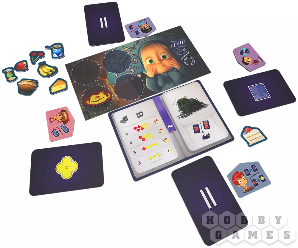У вас на руках будет собственная колода вкусностей из 8 карт. Игра состоит из раундов: каждый раунд вы будете кормить нового монстрика, стараясь угадать его вкусовые предпочтения по подсказкам, записанным в Книге страшилок. Для этого нужно правильно проанализировать, какого цвета или формы любимая сладость чудища, а также сколько её единиц нужно, чтобы утолить его голод. Как только вы получите представление о его предпочтениях, вы по очереди будете выкладывать одну из имеющихся у вас карт лакомств. Можно спасовать, если вы понимаете, что у вас осталось только то, что ему не понравится – ведь задобрить монстрика получится, только если удастся полностью воссоздать желаемый набор вкусностей. Вы можете общаться со своими союзниками, но не можете обсуждать свои карты!