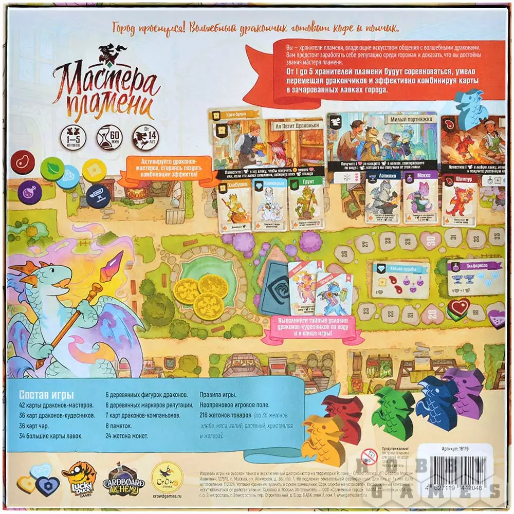 Игра идеально подойдёт тем, кто любит продуманные, но не перегруженные механики, красивые компоненты и атмосферу доброго волшебства. Сможете ли вы вдохновить своих драконов на столько подвигов, чтобы стать истинным Мастером пламени?